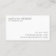 Moderne Visitenkarte mit einfachem Design, in einem eleganten schwarzen Drehbuch in der oberen links Ecke und in der unteren rechten Ecke auf weißem Hintergrund. Die Rückseite hat Ihre Kontaktinformationen. Ein einfaches und minimalistisches Design, das für viele Berufe gut ist, darunter ein Fotograf, echter Anwesen-Agent, Innenarchitekten und mehr.