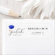 Einfache und moderne Script-Abschluss Rücksendeadresse-Label, um Ihren Schreibwarenbrief hinzuzufügen. Das elegante Skript mit dem Wortgraduierten wird mit einem Serif-Schriftart begleitet, den Sie bearbeiten können, um den Namen und die Adresse Ihres Absolventen hinzuzufügen, sowie die Klasse Jahr. Um eine Touch Farbe hinzuzufügen, gibt es eine Abbildung eines königsblauen und goldfarbenen Graduierungspapiers. Illustriert und entworfen von Patricia Alvarez.