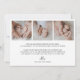 Einfache Geburtsankündigungskarte mit "Danke" in einem modernen Drehbuch zusammen mit Babyname und Geburtsdatum. Die Rückseite hat eine Collage aus Foto mit drei quadratischen Bildern zusammen mit Ihrer persönlichen Nachricht. Diese elegante Geburtsankündigung ist eine großartige Möglichkeit, die Geburt Ihres neuen Babys oder Mädchens anzukündigen.