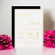 Diese schöne Hochzeitseinladung aus schwarz-goldener Folie eignet sich perfekt für ein anspruchsvolles und luxuriöses Fest. Die luxuriöse Goldtypografie hebt sich vor dem klassischen schwarzen Hintergrund ab und schafft einen zeitlosen und eleganten Look. Die Goldfolie fügt eine einzigartige Touch hinzu, die Ihren Gästen zeigt, wie besonders Ihr großer Tag ist. Diese Einladung wird Ihre Freunde und Familie beeindrucken und wird eine bleibende Erinnerung Ihres schönen Hochzeitstages sein.
