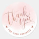 Modernes Dankeschön Drehbuch in Imitate Rose Goldfolie mit individuellem Text auf weichem, rosa Aquarell Hintergrund, einfach und elegant, berufliche Business danke für Ihren Kauf Aufkleber für den Kunden.