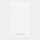 Weißer Hintergrund. Benutzerdefinierte Namen von Paaren. Einfach. Modernes Skript. Gast Napkins. Lavendeltext.