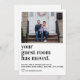 Einfache moderne Typografie Gast Room Foto Moving Ankündigung