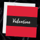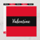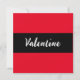 Eine einfache und stilvolle Valentinenkarte in Rot, Schwarz und Weiß. Das Wort "Valentine" erscheint im Design in eleganter Schrift-Typografie. Die Rückseite der Karte weist attraktive Ränder an den oberen und unteren Rändern auf, wobei die Erholung für die eigene Nachricht leer ist.