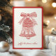 Diese schlichte, stilvolle Weihnachtsgrüßkarte verfügt über eine Vintage zeichnend Glocke mit einem roten Bogen über einem abgrundweißen Hintergrund. Einfach zu personalisieren für unvergessliche Grüße für Familie und Freunde.