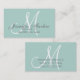Elegante Monogram Customizable Mommy Calling Card auf einem mint grünen Hintergrund mit grauen und weißen Textfarben. Mutter zu sein ist genauso schwierig, wenn nicht schwieriger als jede berufliche Karriere. Mit dieser eleganten Monogramm-Mommy-Calling-Karte können Sie sie auf ein berufliches Niveau heben. Fügen Sie Ihre Informationen hinzu. Elke Clarke©2010. Kontaktieren Sie den Shop für weitere Hintergrundfarben.