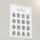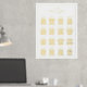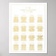 Einfache Hochzeitskarte aus Goldfolie mit elegantem und zeitlosem Design mit Ihrem zweistelligen Monogramm, Ihren Namen, Datum und Sitzplakette, umgeben von einem dünnen Rand. Alle Designelemente sind in realer Folie gedruckt. Das Template besteht aus vier Säulen mit 16 Tischen für acht Personen, die jedoch an die Anzahl der Tische und Gäste angepasst werden können. Ein gepflegtes und klassisches Design, ideal für ein Paar, das ein traditionelles Design mit einer modernen Touch will.