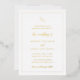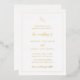 Traditioneller Stil Goldfolie Hochzeitseinladung mit einem einfachen Design mit Ihrem Monogramm zusammen mit Akzenten Wörtern in einem eleganten Skript. Diese klassische Hochzeitseinladung ist ideal für eine feierliche Hochzeit.