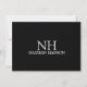 Modernes Geschenkgutachten mit einem schlichten und minimalen Design mit einem Monogramm in einem fett gedruckten Schriftart und einem weißen Namen auf schwarzem Hintergrund.