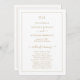 Einfaches, aber elegantes GoldWedding-Programm mit minimalem und sauberem Layout mit dem Monogramm oben und einer Grenze. Dieses klassische Hochzeitsprogramm mit traditionellem Ambiente eignet sich hervorragend für eine feierliche Hochzeit.