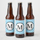 Einfache Monogramm mit Blue Polka Dots Bierflaschenetikett