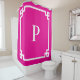 Dekorativer weißer griechischer Stilrand und modernes Serifenmonogramm auf einem soliden, warmen magenta rosa Hintergrund. Dieses schlichte Liniendesign passt sich den Farben an, die für die Badezimmerdekoration am besten geeignet sind. HINWEIS: Die Grenze wurde speziell für diesen Duschvorhang entworfen. Die Grafik ist kein perfektes Quadrat. Ich schlage vor, in meinem Geschäft nach anderen Produkten mit quadratischer Form zu suchen, die für sie bestimmt sind. In der Regel kann ich innerhalb einer Woche Transferaufträge abschließen.