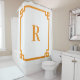 Dekorative orange griechischer Schlüsselrand und modernes Serifenmonogramm auf einem soliden, weißen Hintergrund. Dieses schlichte Liniendesign passt sich den Farben an, die für die Badezimmerdekoration am besten geeignet sind. HINWEIS: Die Grenze wurde speziell für diesen Duschvorhang entworfen. Die Grafik ist kein perfektes Quadrat. Ich schlage vor, in meinem Geschäft nach anderen Produkten mit quadratischer Form zu suchen, die für sie bestimmt sind. In der Regel kann ich innerhalb einer Woche Transferaufträge abschließen.