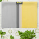 Stilvoll und elegant in zwei Tönen, sonniges Gelb und hellgraues Farbdesign mit halbdurchsichtigem Schwarz-Weiß Gürtel und Monogramm. Personalisieren Sie das Programm durch Ändern der Initialen und Namen.
