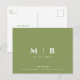 Einfache Moosgrüne Monogramm Hochzeit speichern Si Postkarte