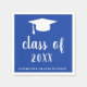 Minimalistische Serviette aus Abschluss mit einem schlichten und klassischen Design mit einem Graduierkopf und "Jahrgangsklasse" in einer dicken Schrift zusammen mit dem Namen des Absolventen in Weiß auf blauem Hintergrund. Die Hintergrundfarbe kann in eine beliebige Farbe geändert werden. Traditioneller Stil mit modernem Flair für einen Absolventen. Diese Papierservietten sind eine großartige Möglichkeit, Ihrer Abschlussfeier eine persönliche Touch hinzuzufügen.