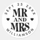 Einfache Mr. Mrs. Name Date Wedding Heart Bevorzug Runder Aufkleber