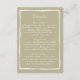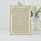 Fügen Sie Ihrer Hochzeitssuite eine Touch von Charme und Klarheit mit dieser wunderschön koordinierten Detail-Umschließkarte hinzu. Das Hotel ist mit einem naturbelassenen, grünen Hintergrund gestaltet und verfügt über einen handgezeichnet weißen Rahmen und ein elegantes, handgeschriebenes Skript für ein sanftes, Bio Ambiente. Ideal, um Reiseinformationen, Unterkünfte, Routen oder besondere Hinweise für Ihre Gäste zu erhalten. Diese Karte ist eine wunderbare Ergänzung zu Ihrem skurrilen Ljubljana Hochzeitskunstwerk und ist online vollständig benutzerdefinierbar, ohne dass es ein Design-Erlebnis geben muss.