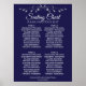 Machen Sie Ihren Hochzeitsempfang mit diesem Sitzplan schön. Sie sind als Teil unserer Silver & Navy Elegant Wedding Suite konzipiert und zeichnen sich durch ein schlichtes und dennoch elegantes Design aus, das auf einem marineblauen Hintergrund mit silberner Imitat-Folie und Blumenrahmen in Weiß gehalten ist. Dieses Diagramm zeigt die Tabellenzuordnungen, damit Ihre Gäste den richtigen Tisch leicht finden können.