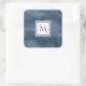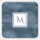 Einfache Navy Blue Subtle Marble Moderne Monogram Quadratischer Aufkleber