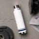 Einfache Navy Streifen White Wedding Water Flasche. Persönlich gestalten Sie diese stilvolle Wasserflasche mit Ihrem individuelle Name.