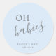 Chic und modern junge Zwillinge Baby Dusche bevorzugen Aufkleber mit einem minimalen Design mit der Nachricht "Oh Babies" in Serif- und Handschriftenschrift Schriftart und Ihren Namen und Veranstaltungstitel unten, grau, auf einem hellblauen Hintergrund. Die Schriftart und Hintergrundfarben können durch Anklicken des Buttons "Anpassen" in beliebig viele Farben geändert werden. Diese eleganten Aufkleber eignen sich perfekt für eine Babydusche für zwei Jungen und sorgen für eine persönliche Touch.