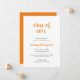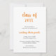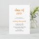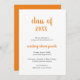 Minimalistische Abschluss-Ankündigungskarte mit einem einfachen und klassischen Design mit "Jahrgangsklasse" und dem Namen des Absolventen in einer dicken orangefarbenen Schrift-Handschrift auf weißem Hintergrund. Die Rückseite ist orange. Eine traditionelle Ankündigungskarte mit einem modernen Flair für einen Absolventen.