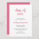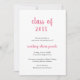 Minimalistische Abschluss-Ankündigungskarte mit einem einfachen und klassischen Design mit "Klasse des Jahres" und dem Namen des Absolventen in einem dicken rosa Drehbuch auf weißem Hintergrund. Die Rückseite ist massiv rosa. Eine traditionelle Ankündigungskarte mit einem modernen Flair für einen Absolventen.