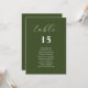 Einfache Olive Green Wedding Seating Karten mit weißem Skript. Personalisieren Sie es mit Ihren Informationen. Anzeigen passender Produkte aus dieser Sammlung.