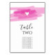 Dieses Design zeichnet sich durch elegante rosa Farbstriche und Herz aus. Die schwarze Typografie und das weiße Herz kontrastieren mit den rosa Farbstrichen und schaffen ein schlichtes, elegantes Design. Modernes Design mit einer Drehung von Einfachheit und Eleganz. Dieses Design ist ideal für jedes Hochzeitsthema. Das perfekte Hochzeitsdesign für die ganze Saison über. Die passenden Einladungen für Hochzeitsfeiern und andere Artikel für die Schreibwaren sind ebenfalls verfügbar.Passen Sie die Anzahl an und kaufen Sie die einzelnen Tische individuell, je nach Anzahl der Tischnummern, die Sie benötigen.