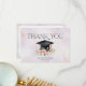 Eine saubere und moderne Dankeskarte zur Abschlussfeier. Die Vorderseite zeigt einen eleganten abstrakten Wasserfarbhintergrund. Sanfte, blasse Lavendel- und Rosa-Töne verleihen eine zarte, feminine Note und schaffen eine gepflegte und stilvolle Karte, um Ihre Wertschätzung dafür zu zeigen, dass Sie diesen besonderen Meilenstein mit Ihnen feiern. Eine schöne Wasserfarbillustration einer Studentinnenmütze mit goldenem Quast mit hübschen rosa Blumen und grünen Blättern.