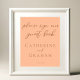 Dieses hübsche Pfirsichposter ist die neue Trendfarbe für die Sommerbraut. Unser süß pfirsichfarbenes Gästebuchzeichen bietet eine elegante hellbraune Schrift für eine trendige, minimalistische Veranstaltung am Nachmittag für eine weibliche Braut, die Lieben hat, aktuelle und moderne bleibe. Bitte unterschreiben Sie unser Gästebuch.