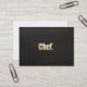 Realistisches digitales Bild von glänzender Goldfolien-Typografie auf Imitaten schwarze Leinen texturierten Hintergrund. Dieses einzigartige Design verleiht Ihnen ein modernes, kreatives und raffiniertes Ambiente, um Ihren Stil des Kochens und der Präsentation zu repräsentieren. Original Illustration von Maura Reed. Aufgrund der dunklen Farbe empfiehlt sich für dieses spezielle Kartendesign ein Premium-Kartenbestand. Dies wird eine reiche, scharfe Wirkung und lange stehende Haltbarkeit garantieren.