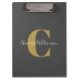 Einfache Personalisierte Zwischenablage mit Monogramm und Name in Schwarz und Gold