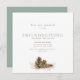 Pine Cone Friendsgiving Einladung und weißer Hintergrund.