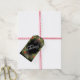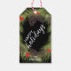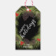 Moderne Weihnachtsgeschenk-Tag mit Happy Holidays Text Zitat in schlichter minimalistischer, weißer Typografie-Schriftart auf pinecones Kranz auf schwarzem Hintergrund. Mit der Option, um mit Familie oder Firmennamen oder kurzen Text Ihrer Wahl.
