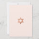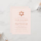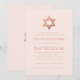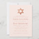 Eine einfache rosa und rose-goldene Bat-Mitzvah-Einladung, deren einzige Verzierung der (falsche) rose-goldene Stern von David im oberen Teil (und auf der Rückseite) ist. Der Hintergrund ist blassrosa. Der gesamte Text ist in dunkleren rosa Großbuchstaben und kann bearbeitet werden.