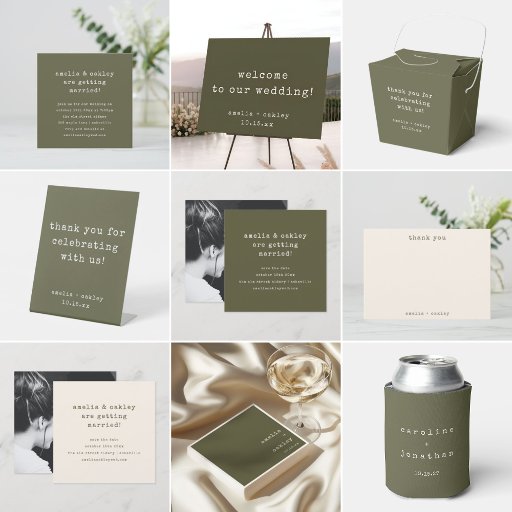 Minimalist Olive Classic Typewriter Wedding SuiteDesignt von Opal Ellery