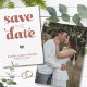 Front: minimale "Save the Date" und Paare Namen, Hochzeitsort in Terrakotta. Ein einfaches, moosgrünes Herz zwischen den beiden. Zurück: Ihr Lieblings-Verlobung-Foto des glücklichen Paares.