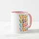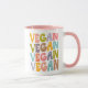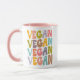 Diese einfache "Vegane" Tasse weist ein Wort in Retrofarben auf.