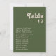 Einfache Retro Vibes Olive Green Tischnummer Chart