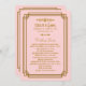 Diese Hochzeitsprogramme sind mit einer rosa und goldenen Farbpalette, einem geometrischen Rahmen und anderen stilistischen Details inspiriert, die alle durch Art Deco und die rauschenden Zwanziger Jahre. Sie können die Textfelder des Beispiels nach Ihren Wünschen anpassen.