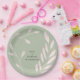 Einfache rosa Blätter Namen Datumsangaben Grüne Ho Pappteller