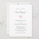 Moderne Hochzeitseinladung mit einem schlichten Design mit einem niedlichen rosa Herz und der "Hochzeit von" in einem eleganten Drehbuch mit Wimpern. Die Rückseite ist ein passender Rosa-Schatten. Diese lustige Einladung zum Hochzeitsfeiern ist ideal für eine lässige Frühjahrshochzeit.