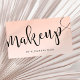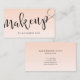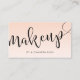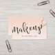 Elegantes minimalistisches Make-up-Visitenkartendesign mit Namen und Make-up-Text in einem modernen, handgeschriebenen Skript-Schrift, Farbrosa Hintergrund und Kontaktinformationen auf der Rückseite.