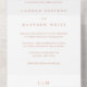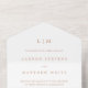 Einzigartige Einladungs-Vorlage mit rsvp-Karte für eine bequeme und kostengünstige Option für preisbewusste Paare. Die moderne und dennoch elegante Einladung beinhaltet neben Ihrem zweistelligen Monogramm oben auch Ihre Hochzeitsdetails in Rose Gold auf weißem Hintergrund. Ein elegantes und stilvolles Design, das sich ideal für ein minimalistisches Paar eignet.
