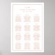Einfache Hochzeitssitzplakette mit modernem, elegantem Design mit zwei Buchstaben Monogramm, Namen und Datum mit der Grafik unten, umgeben von einem dünnen Rand. Das Template besteht aus drei Säulen mit zwölf achtköpfigen Tischen, die jedoch an Ihre Anzahl von Tischen und Gästen angepasst werden können. Der gesamte Text ist in Rose goldfarben über einen weißen Hintergrund und kann durch Klicken auf die Schaltfläche "Anpassen" in eine beliebige Farbe geändert werden. Ein elegantes und stilvolles Design für Hochzeitssitze, das sich ideal für ein minimalistisches Paar eignet.
