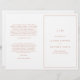 Einfach gefaltetes Hochzeitsprogramm mit modernem, aber elegantem Design mit Ihren beiden ersten Monogrammen und Ihren Details, umgeben von einem dünnen Rand auf der vorderen Abdeckung. Im Inneren befindet sich Ihre Hochzeitsfeier auf der links Seite und Ihre Zeremonie auf der rechten Seite. Alle Designelemente sind in Imitate Rose goldfarben über einem weißen Hintergrund und können im Designbearbeitungsprogramm geändert werden. Ein elegantes und stilvolles Design, das sich ideal für ein minimalistisches Paar eignet. Diese billigen Hochzeitsprogramme werden auf Papierbögen gedruckt, um eine preisgünstige Option zu erhalten.