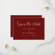 Einfach und modern weiß auf rotem Hintergrund Hochzeit "Save the Date". Ideal für jede Hochzeit zu jeder Jahreszeit.