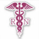 Ein Vinyl-Aufkleber mit einem roten Caduceus-Symbol mit den Buchstaben R N auf beiden Seiten. Ideal für registrierte Krankenschwestern.